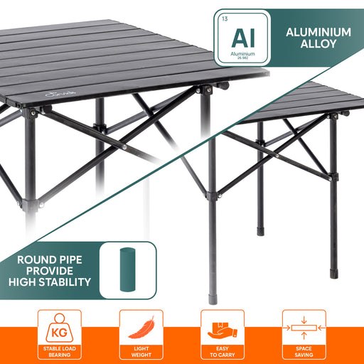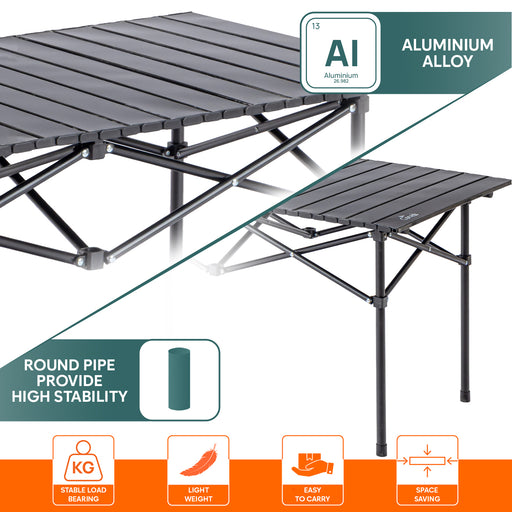 Corvids Multipurpose Folding Camping Table with Roll-up Tabletop | Compact & Portable | Best for Hiking, Picnic, Garden, BBQ & Outdoor Use (Black, Large)