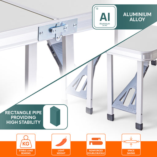 Corvids 6 Feet Multipurpose Aluminium Folding Camping Table with Carrying Handle (White)