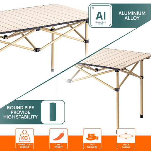 Corvids Multipurpose Folding Camping Table with Roll-up Tabletop | Compact & Portable | Best for Hiking, Picnic, Garden, BBQ & Outdoor Use (Khaki, Large)