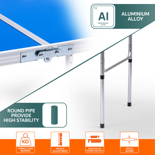 Corvids 6 Feet Multipurpose Aluminium Folding Camping Table with Carrying Handle (Blue)